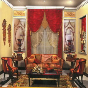 • بعدها يقوم الفني باختيار نوع القماش المناسب للتصميم الذي قام العميل باختياره والاتفاق على السعر وموعد التسليم والتركيب.